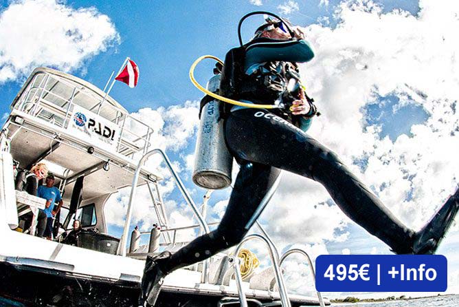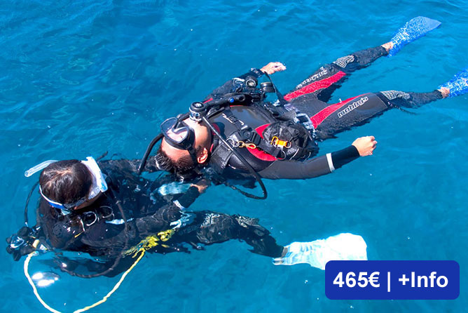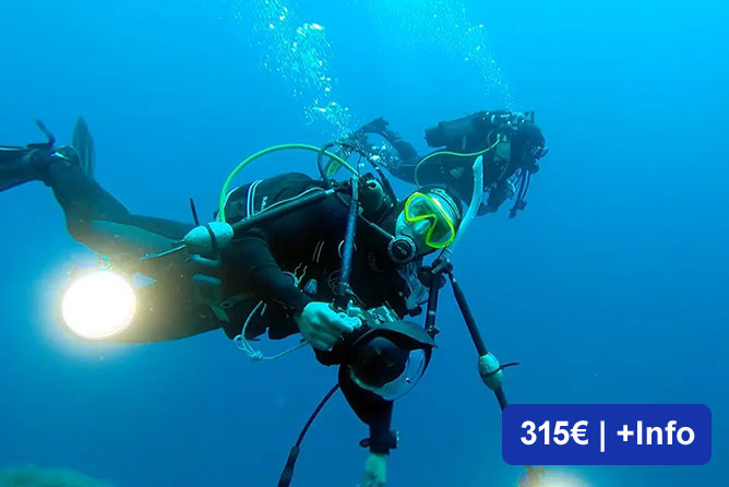 Kurs mit 5 Tauchgängen: 2 Pflichttauchgänge (Tieftauchen und Navigation) und 3 nach Wahl, z. B. Wracks, Nachttauchen, Tarierung, Bootstauchgänge usw. Mit dieser Zertifizierung darfst du bis zu 30 Meter tief tauchen.