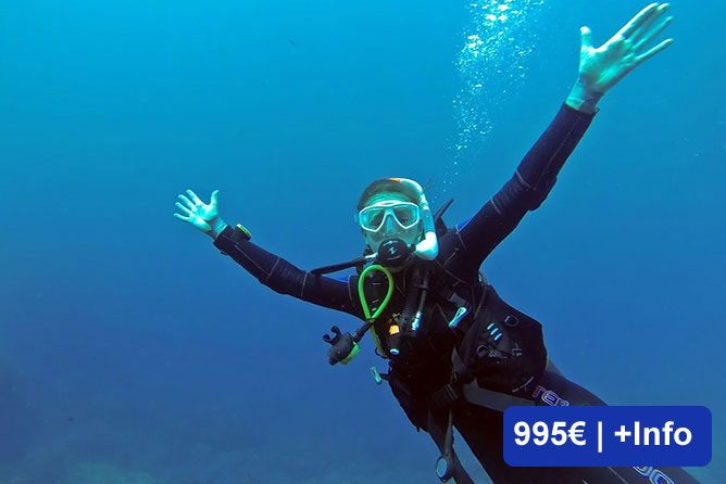 Cours avec 5 plongées : 2 obligatoires (profonde et navigation) et 3 au choix, comme épaves, plongée de nuit, maîtrise de la flottabilité, plongée depuis un bateau, etc. Cette certification te permet de plonger jusqu’à 30 mètres.